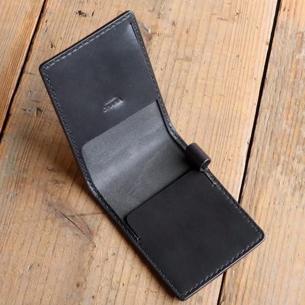 ブラジル産のミモザの樹皮から抽出されたタンニンエキスで約20日間の時間をかけて じゅうぶんになめし込みんだ栃木レザーのヌメ革にグレージング仕上げをしており、吟面がタイトで密な艶感があります。グレージング加工時の摩擦熱により吟面に独特のムラが生じます。
